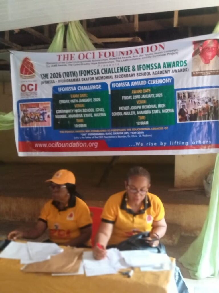 The IFOMSSA Challenge is a one-day examination organised by the OCI Foundation in conjunction with the Otuocha Zone of the Anambra State Post Primary Schools Service Commission, PPSSC (who is in charge of the educational activities in Anambra East Local Government Area of Nigeria).