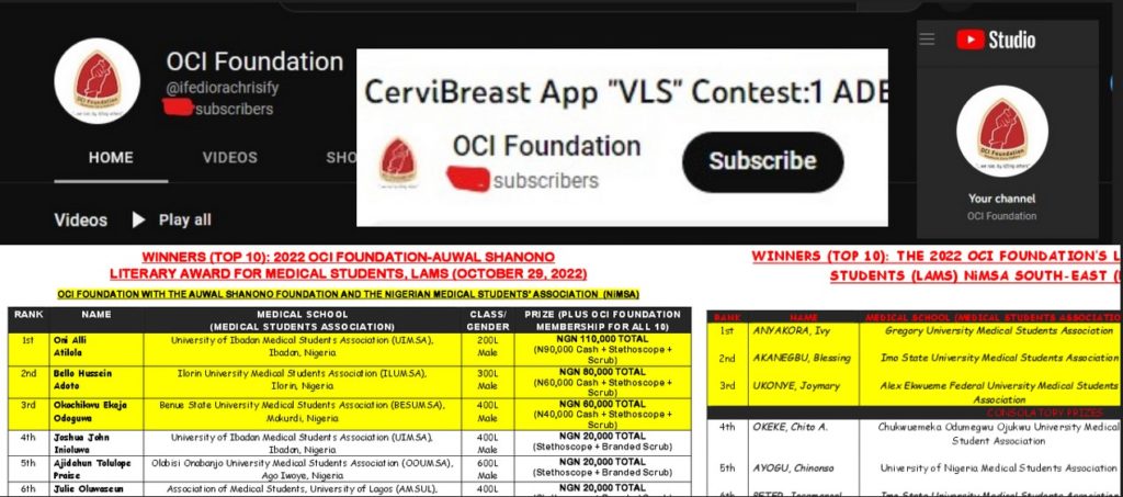 This VLS (View, Like, and Subscribe) Contest features Medical Students from different Nigerian medical schools who participated in the OCI Foundation-sponsored “2022 Literary Award for Medical Students, LAMS” (National and Regional) competition.