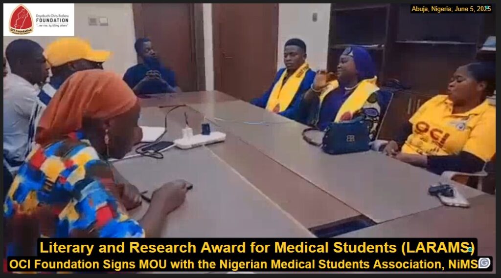 In furtherance of its commitment to continue promoting literary and research skills among medical students across Nigeria, the OCI Foundation International has signed a Memorandum of Understanding with the Nigerian Medical Students’ Association (NiMSA). NiMSA is the student arm of the Nigerian Medical Association (NMA) and the Umbrella body for all medical students in Nigeria.
